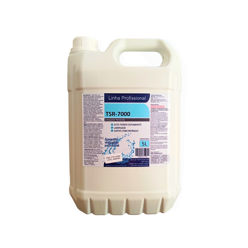 O TSR-7000 é um limpador de uso geral super concentrado que utiliza o poder do oxigênio ativo (peróxido de hidrogênio) para atuar em diversos tipos de sujeiras e superfícies. Este produto de linha profissional combina ação detergente com desinfecção profunda, removendo manchas e odores enquanto deixa as superfícies limpas com o mínimo esforço.